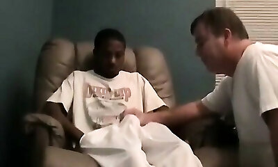 异族同性恋人有快乐作为一个白色的家伙挤奶一个黑檀木的人关闭